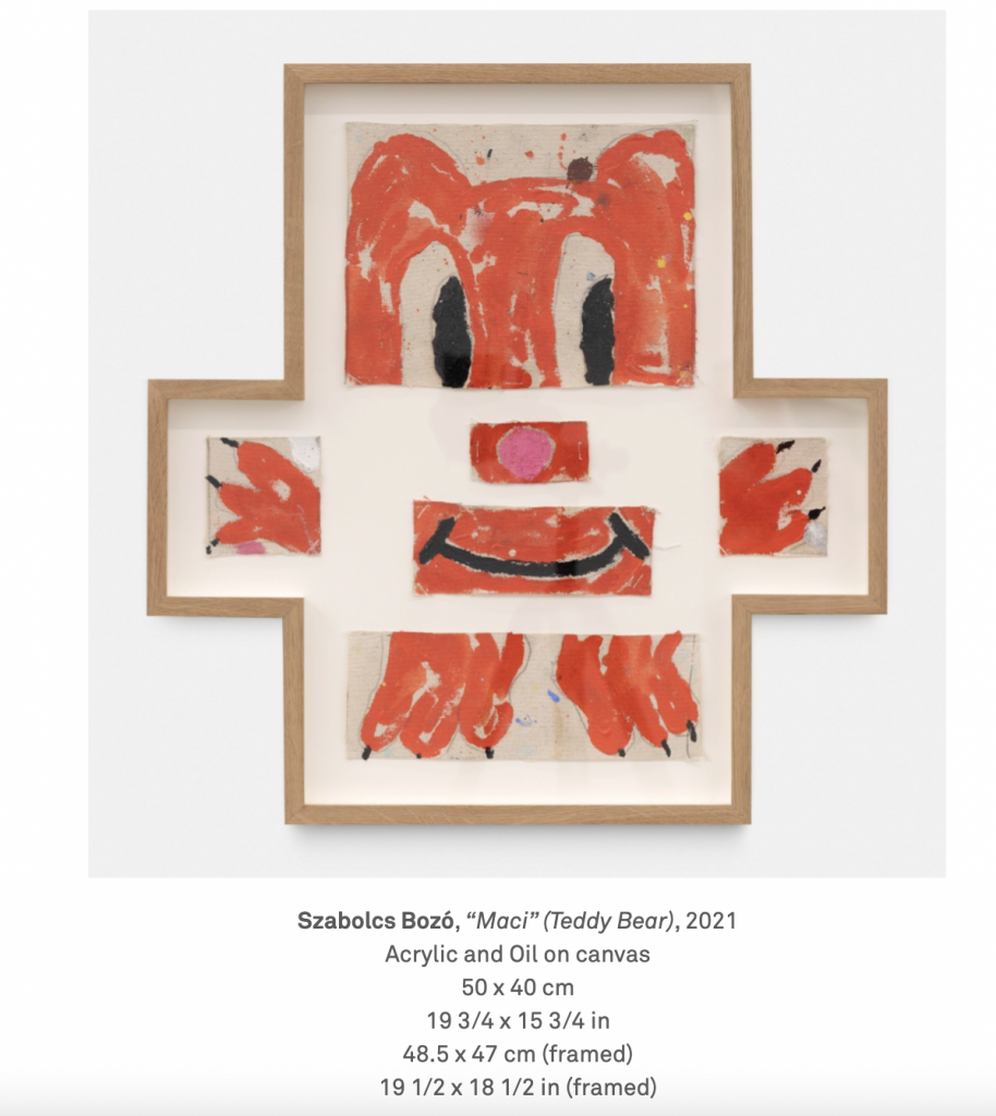 Szabolcs Bozó (b. 1992, Pécs, Hungary) lives and works in London. Recent solo exhibitions include Balaton, Sifang Art Museum, Shanghai (2022); The Explorer, Carl Kostyál, London (2021); Busójárás (Carnival), Almine Rech, Brussels (2021); ‘Home Again’ at L21 Palma de Mallorca, Spain (2020); ‘Big Bang’ at Semiose Gallery, Paris (2020); and a two-person show with Richard Woods at L21, Palma de Mallorca, Spain (2019).