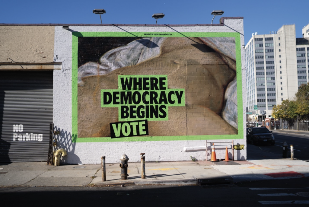 In partnership with advocacy groups and driven by our commitment to impact the 2024 NYC election, we created the Where Democracy Begins mural. This public mural amplified the critical urgency of voting to protect access to reproductive healthcare and bodily autonomy, seamlessly merging activism and art. It stood as a rallying cry as well as a rally location, reminding New Yorkers of their power to shape democracy.