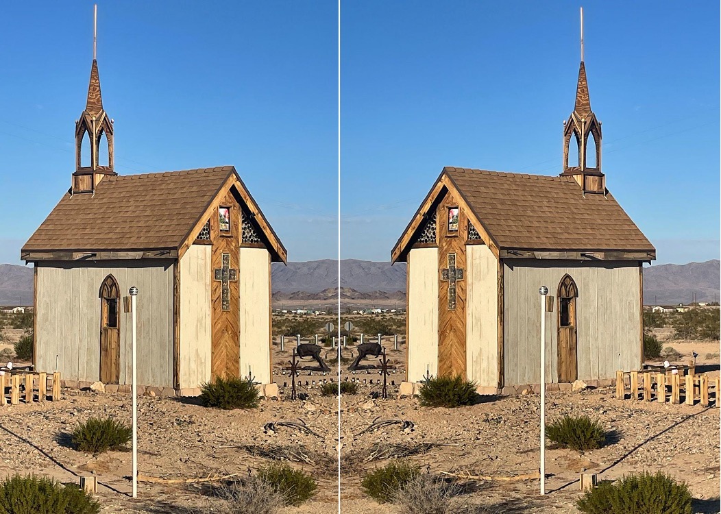 Tucked away between Joshua Tree National Park and the Cleghorn Lakes Wilderness area, the Glass Outhouse Art Gallery (GOA) stands as a beacon of creativity and eccentricity in the heart of the desert. A haven for art collectors seeking unique and off-the-grid collecting experiences. GOA Gallery offers an immersive experience unlike any other. Visitors are immediately greeted by a diverse array of indoor and outdoor installations that defy convention, after entering this artistic oasis. The highlights are the infamous glass outhouse and one of the smallest wedding chapels. Both set the tone for the gallery’s offbeat charm.