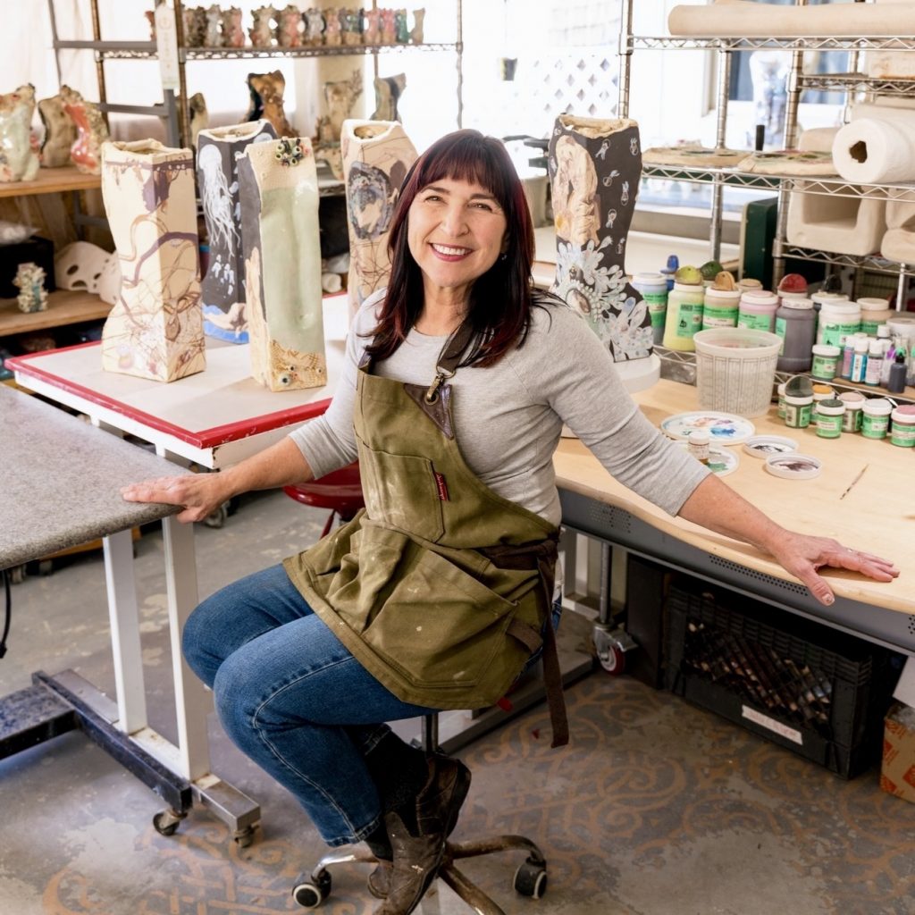 Julia C R Gray, is a native California artist who sculpts ceramic torsos with rich layers of form, texture and painted narrative imagery. Her artwork portrays multilayered messages, starting with vulnerability of the oceans and our bodies, balanced with the dialectic message of the power of the oceans and the strength of women’s bodies. Gray’s artwork also comments on contemporary life, personal experience and consciousness of nature.