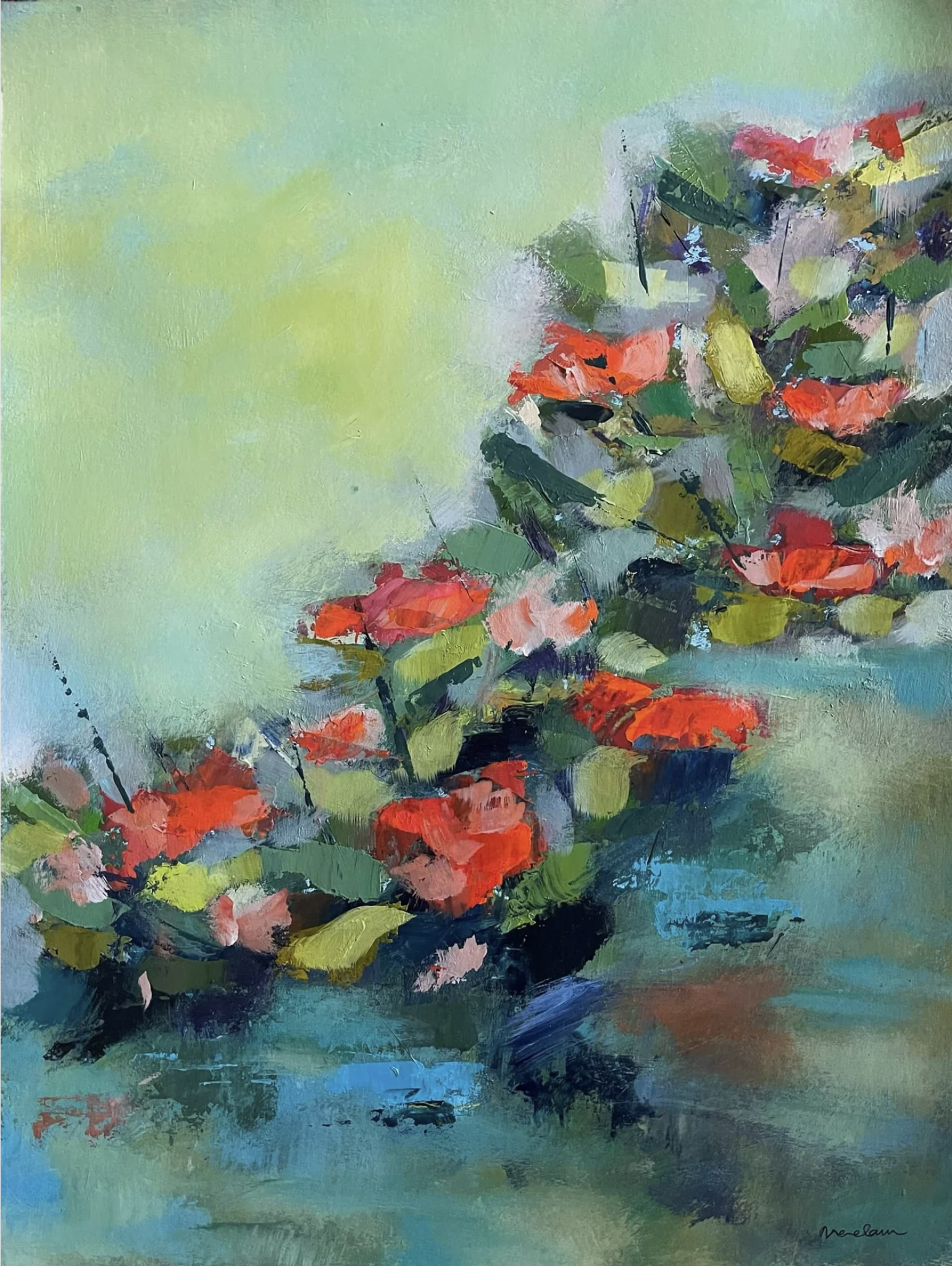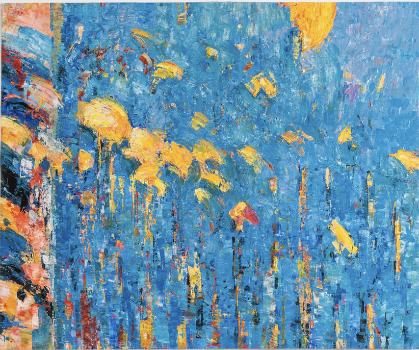 Neelam creates her floorcloth abstract mixed media paintings from inspirations of earth, water, wind, fire and space as viewed through the prism of her soul, sharing her inner spirit with the viewers. Viewers often find themselves drawn into her paintings, enveloped by the serene atmosphere of the tranquil colors and gentle brushstrokes. Each piece evoking a sense of peace and introspection, inviting viewers to pause, reflect, and perhaps even meditate upon the beauty captured on the canvas. Many describe feeling a sense of calm wash over them as they immerse themselves in the artwork, allowing it to transport them to a place of tranquility and serenity.