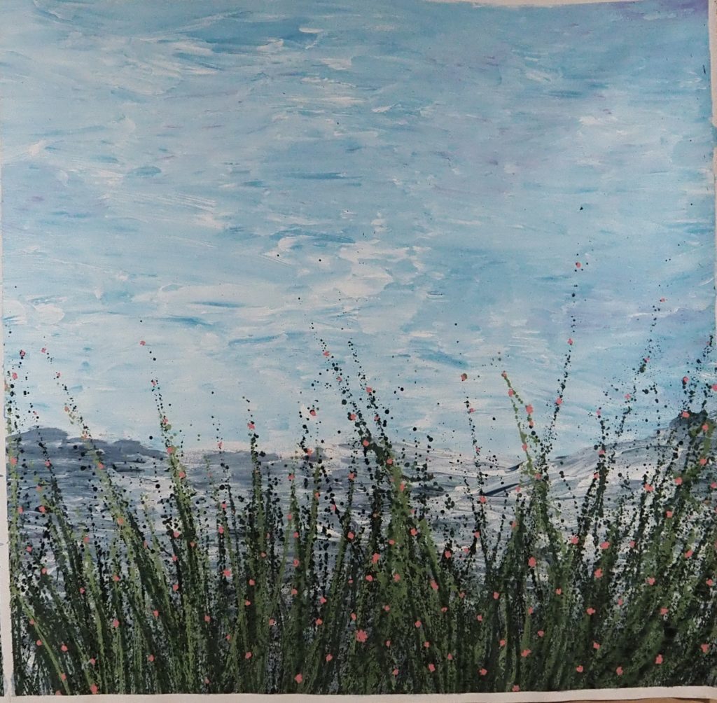 A: My father has been my biggest inspiration. He is my favorite artist and as a kid, I had the unique experience of watching each of his artistic creations from beginning to end. It was mystifying to me and helped to ignite an interest in creativity and expression. My father created works of art for the family and himself, rarely showing his work to anyone other than family and close friends. I respected his humility, but at the same time, my family wished the world would see a glimpse of his artwork that captured a wide range of themes. I would describe his art as aesthetic, creative, and harmonious. While he mainly works with acrylic paint, he can be considered a mixed-media artist, as he uses a variety of different materials to create unique visual art. In addition to acrylic paint, my father has used tree branches, seashells, sand, metal, paper, etc. to make artwork. One of my favorites of his is a NYC street scene with the Empire State Building in the background that he made entirely out of newspaper clippings. The one medium he hasn’t chosen to use is oil paint, which is why I chose to, challenge myself with the lessons I learned from just observing him.