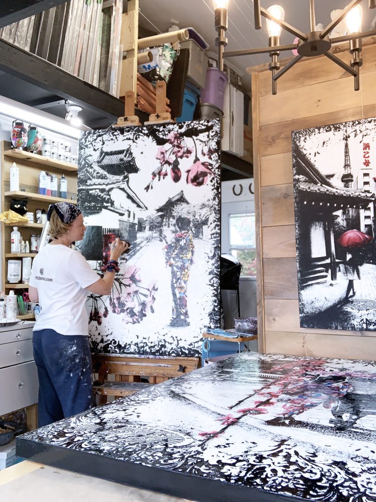 A: My former manager and dear friend who passed away suddenly last year gave me a lot of great advice. The one that sticks out the most is ” just show up every day, showing up is 90% of the gig. go to your studio and paint even if you don’t feel like doing it” That was some good advice, I think he got that from Dolly Parton.