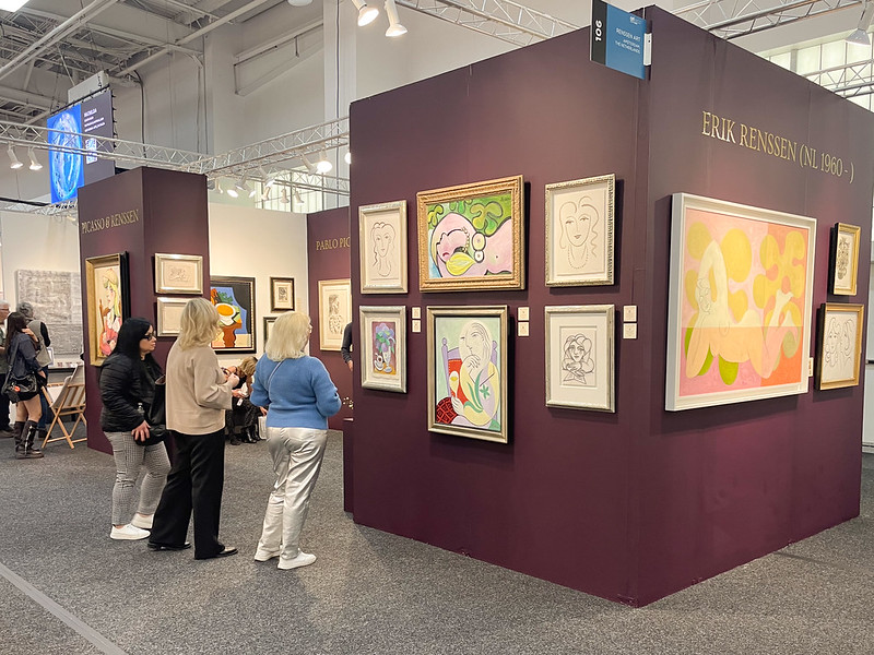 Renssen Art Gallery continued their annual success with significant sales, including Erik Renssen’s Amsterdam at Dusk, Lovers, Two Women, Pitcher and Apple II, and Two Nudes with Parasol. They also placed Picasso prints Harlequin 1924 and The Cannes Studio.
